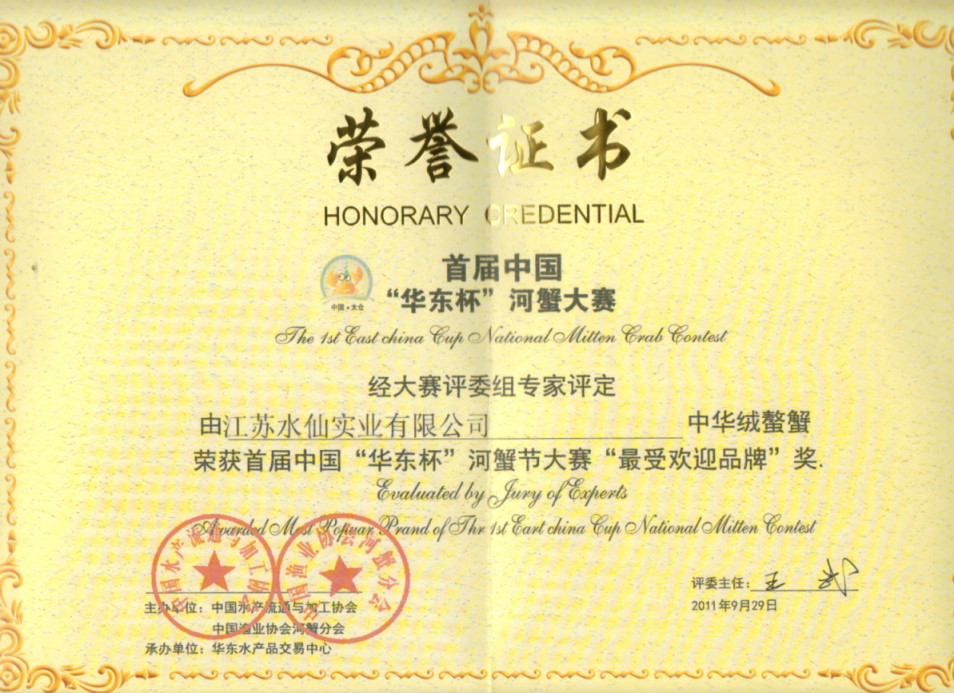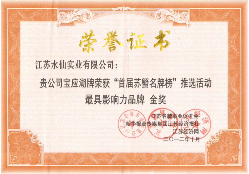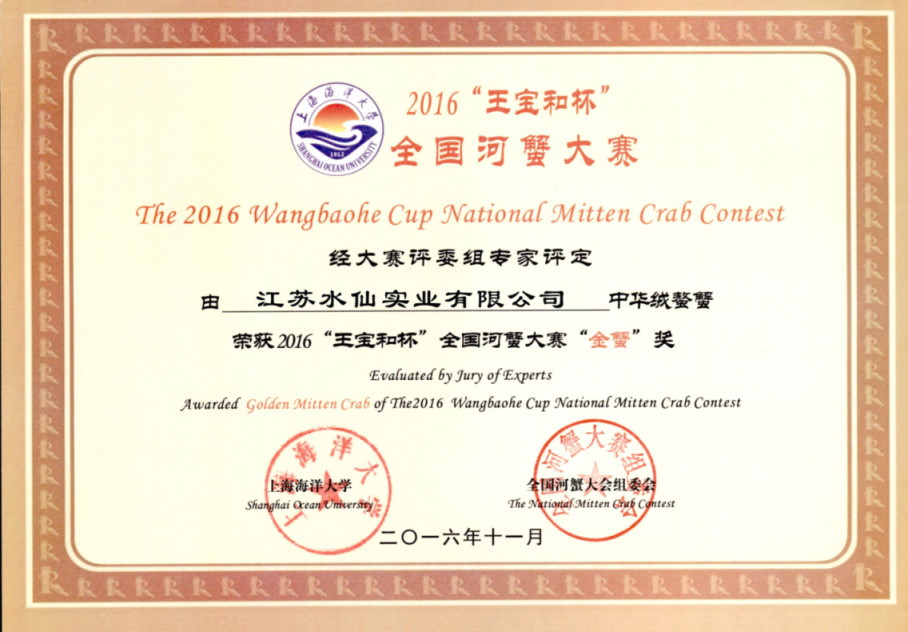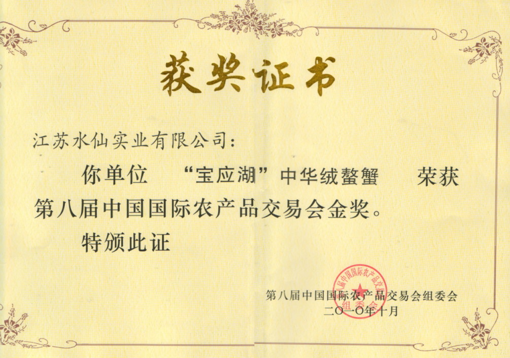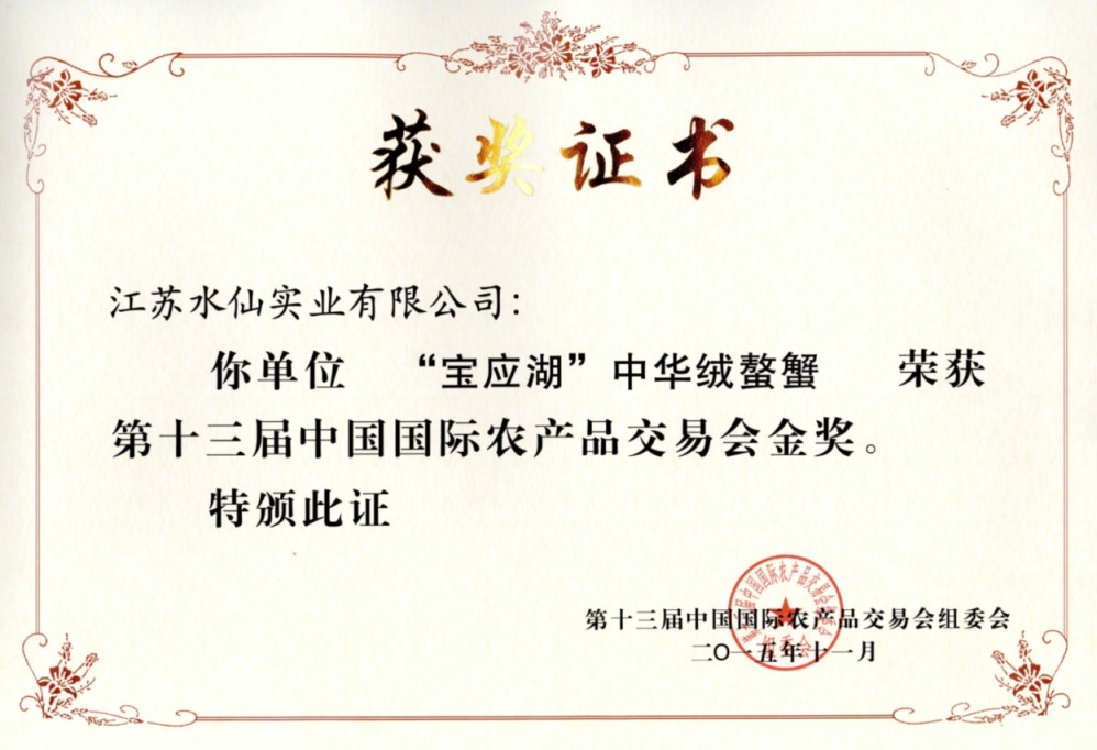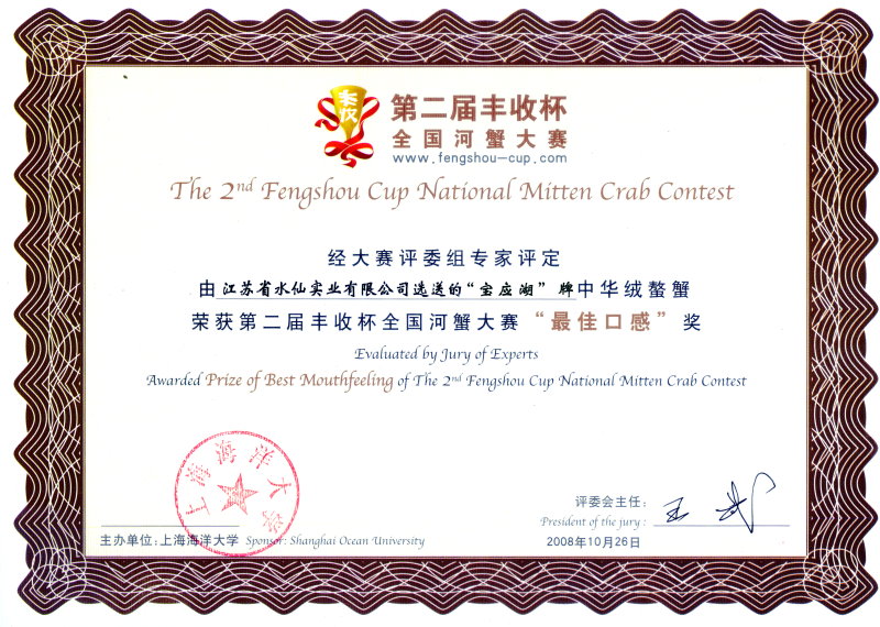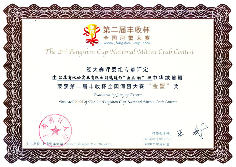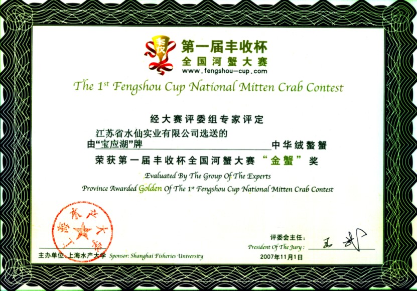 “寶應(yīng)湖”大閘蟹各類獲獎證書